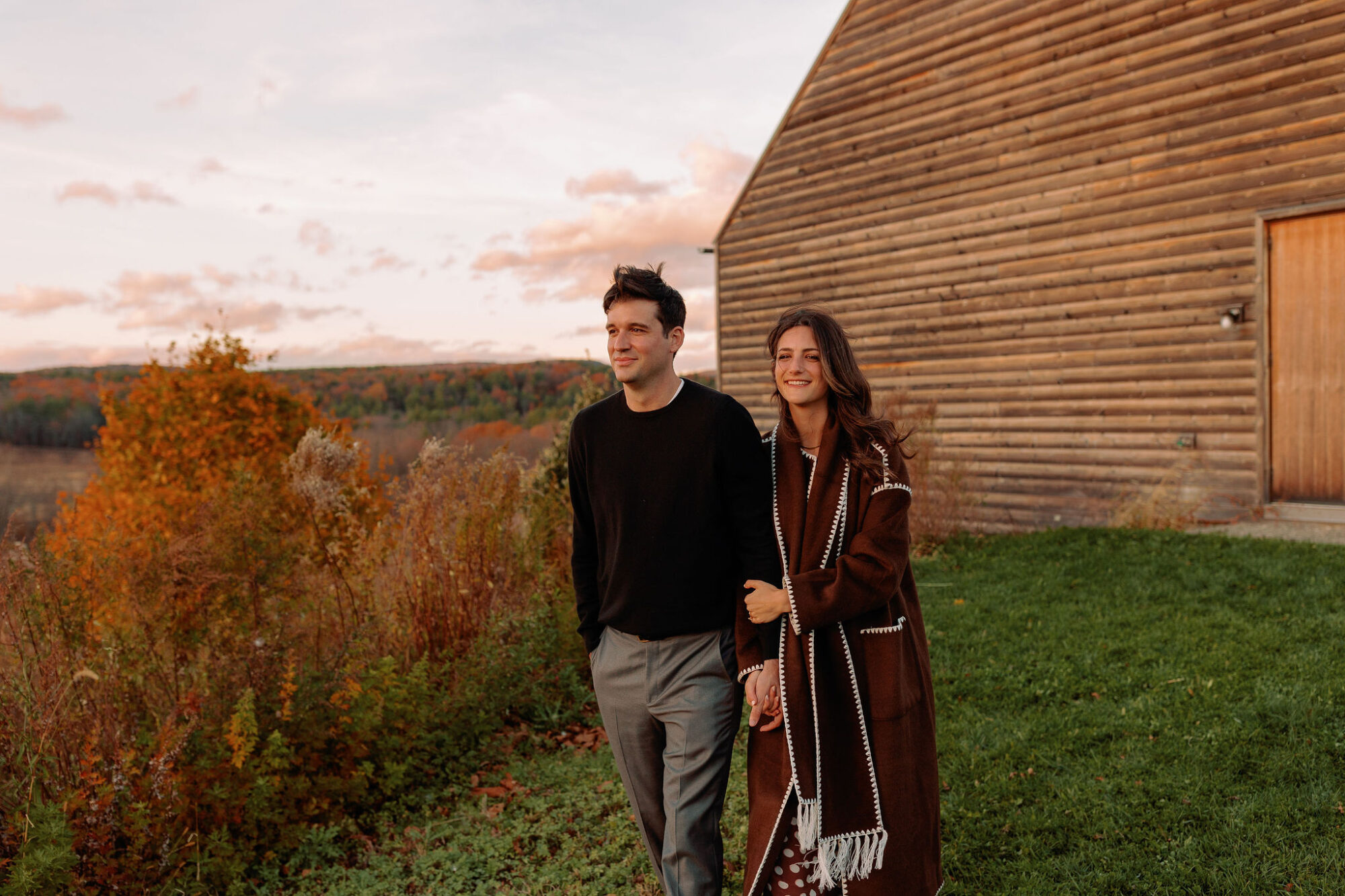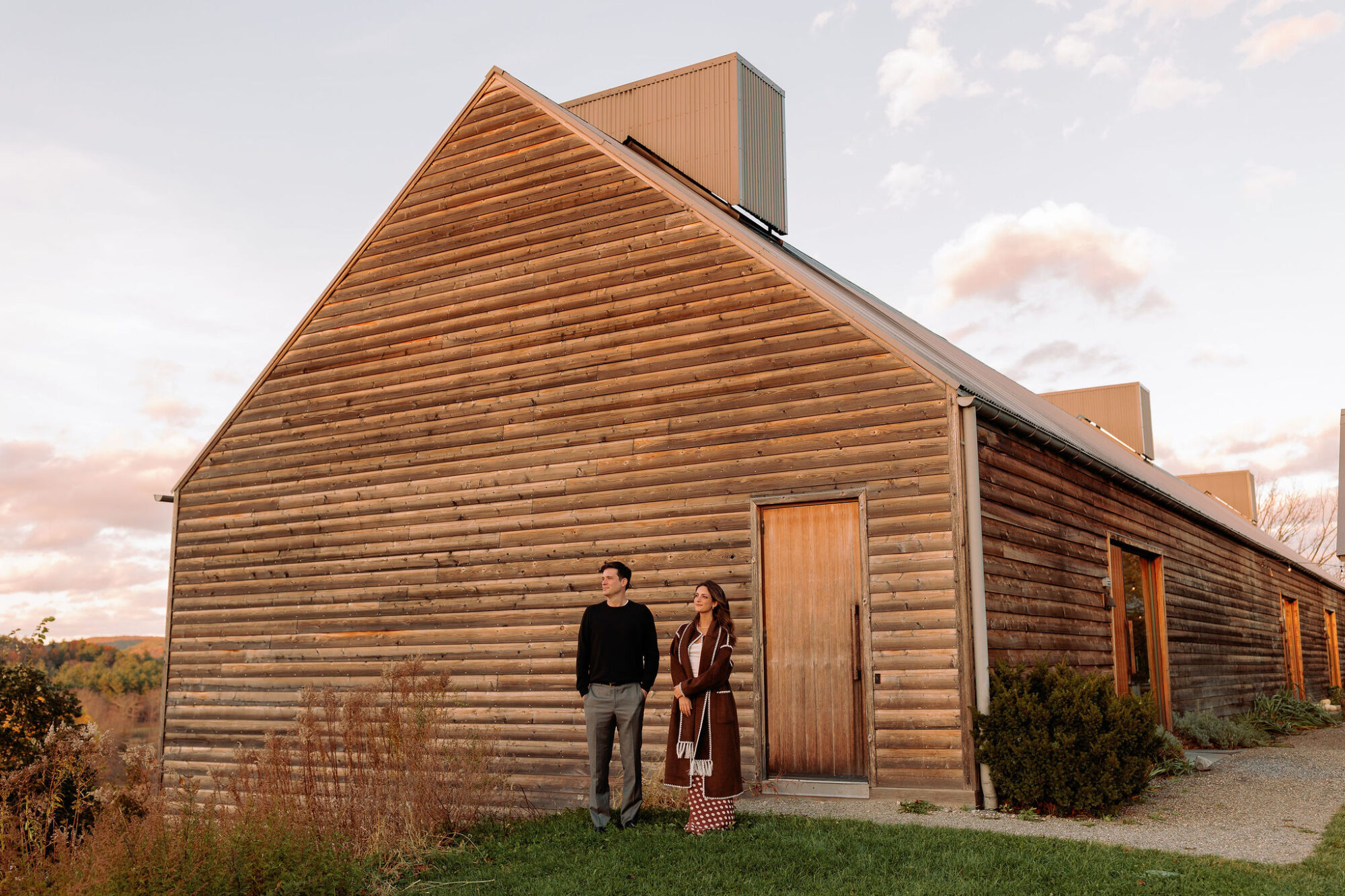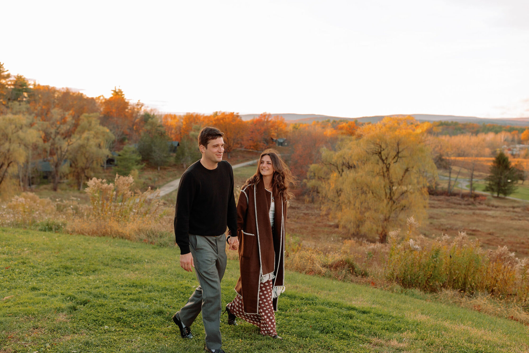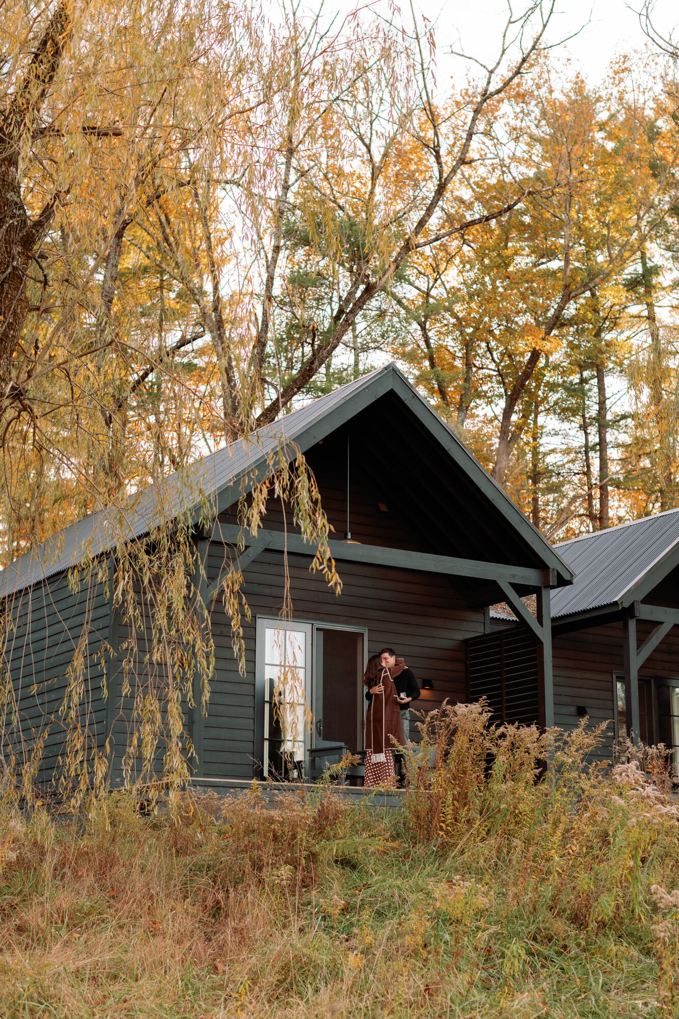 Inness is one of those Hudson Valley venues that feels effortlessly timeless with a mix of modern design, rustic charm, and panoramic views that shift with the seasons. In the fall, the property transforms into a warm palette of golds and deep oranges, with the Catskill Mountains framing every view. Between the open fields, cozy cabins, and minimalist interiors, it’s easy to see why couples fall in love with the idea of celebrating or proposing here. Whether it’s an intimate engagement, an elopement, or a full wedding weekend, Inness captures everything that makes the Hudson Valley so special.