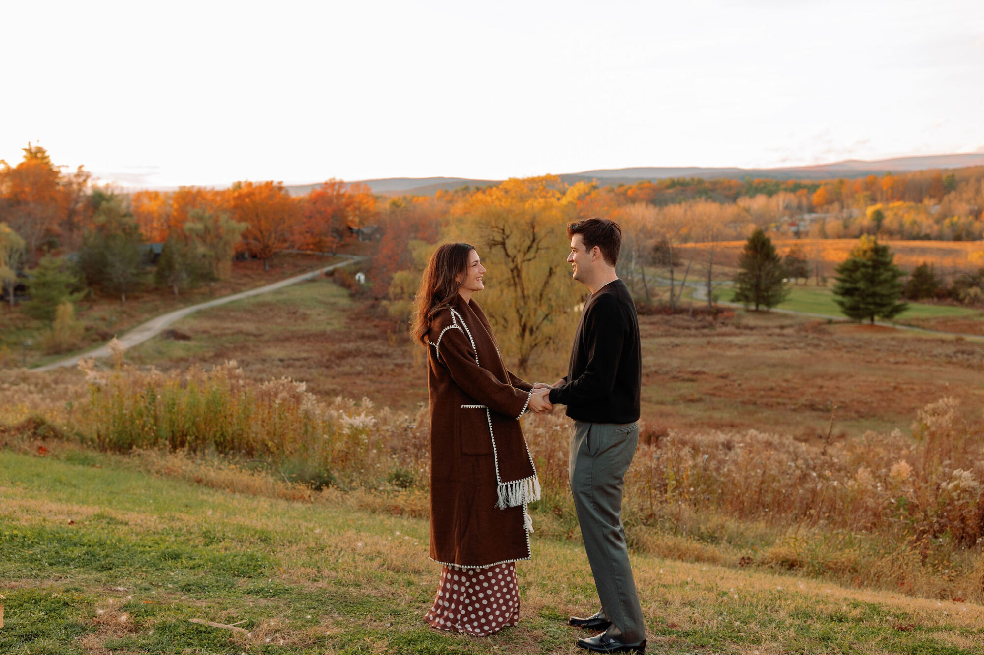This fall proposal at Inness was one of those moments that perfectly captures why I love being a Hudson Valley wedding photographer. Inness, with its sweeping mountain views and cozy autumn light, set the scene for the sweetest surprise proposal. The air was crisp, the leaves were golden, and everything about the evening felt effortless and intimate. It reminded me of how magical the Hudson Valley is in the fall.